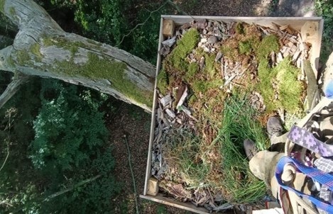 Widok wnętrza platformy lęgowej dla puchacza