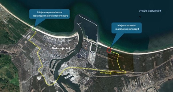 Wydmuchrzyca piaskowa Leymus arenarius - miejsce pobrania roślin.